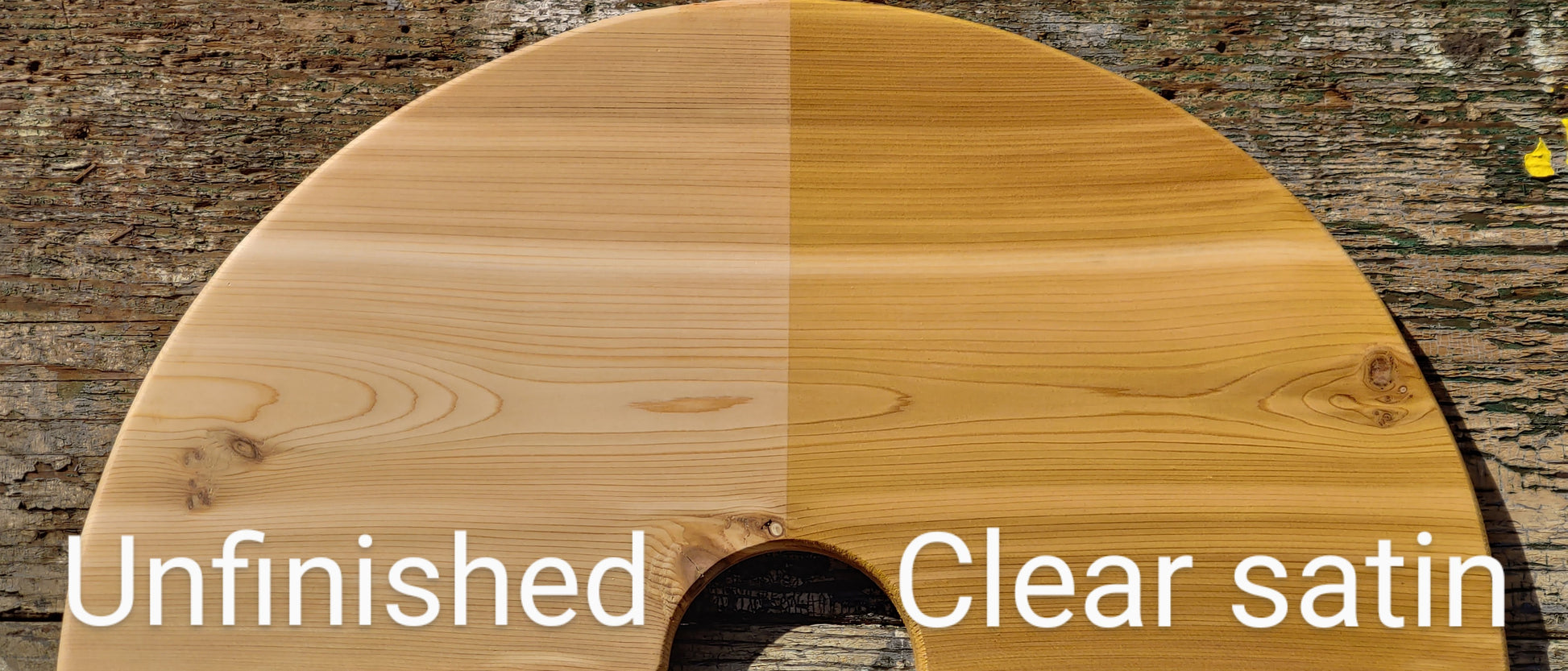 Cedar is naturally weather resistant. Select unfinished to let it patina/finish it yourself, or finished with clear satin topcoat for added protection.