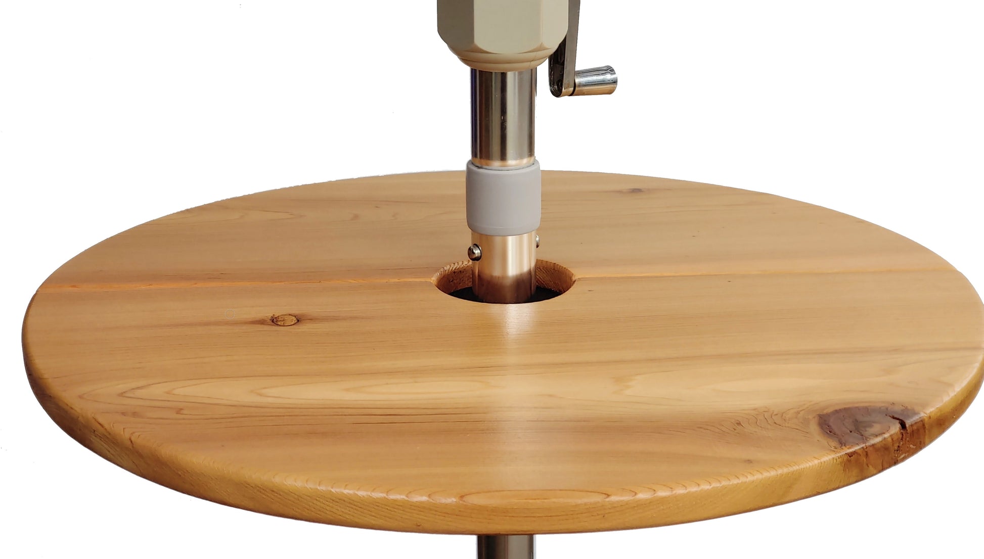 Tray table attachment add-on for umbrellas. Fits 1.5 inch (most common) and other diameter posts, easy installation, adjustable height, and removal. Stainless steel hardware. Excellent way to add an additional tray to your umbrella with your existing table! Patent pending.